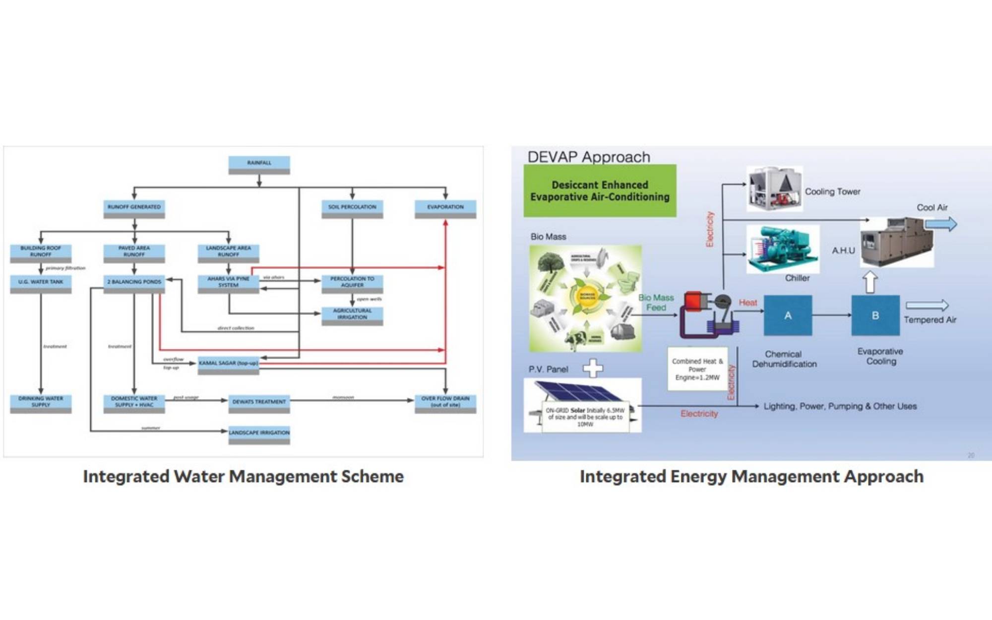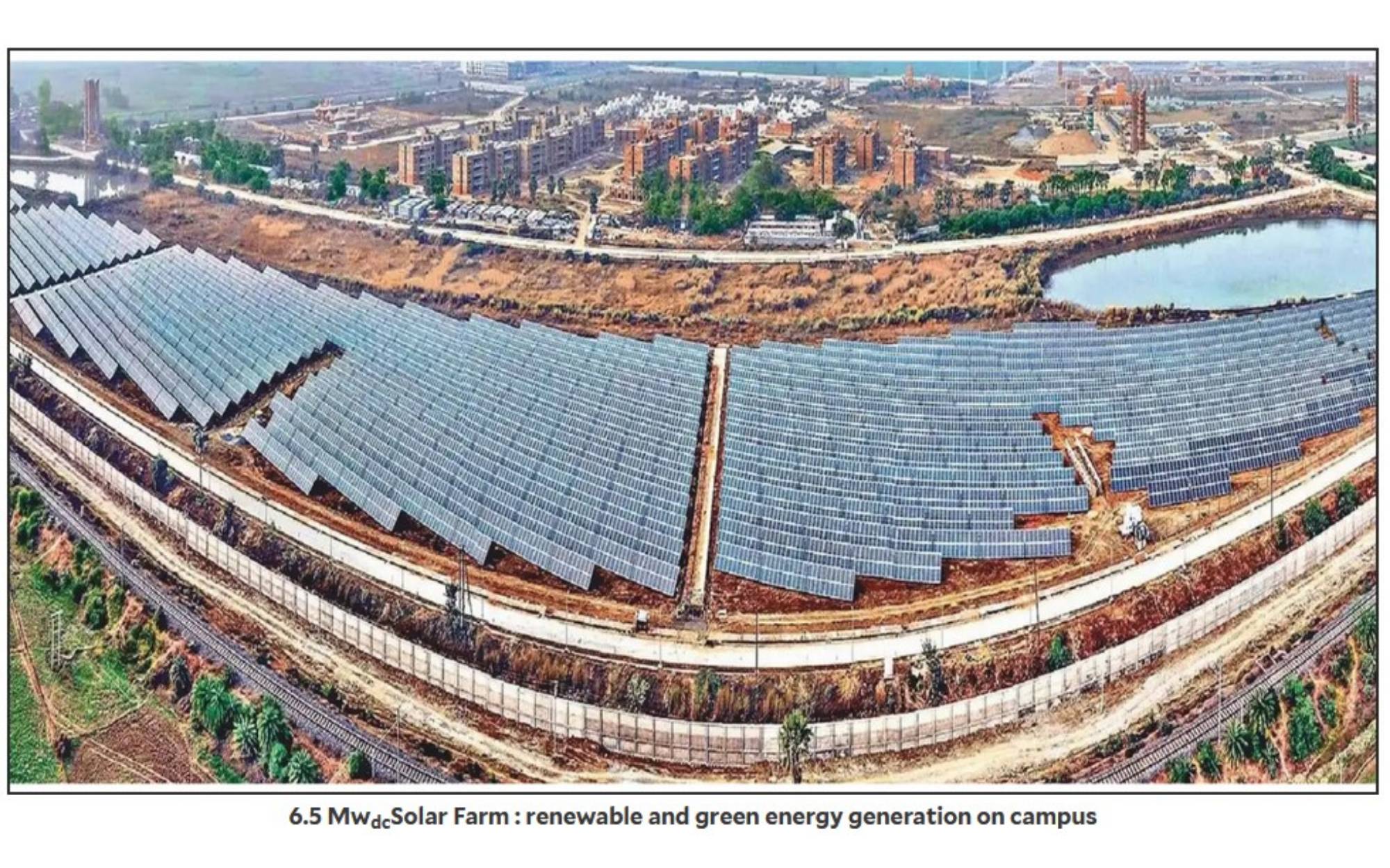Water Management: The campus aims to be water-positive, using rainwater harvesting, greywater recycling, and integrated water bodies for recharge and storage.